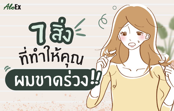 ใครเจอปัญหาผมร่วงแบบงงๆ ไม่รู้สาเหตุ มารวมกันตรงนี้! วันนี้ AloEx มัดรวมสาเหตุที่อาจทำให้เกิดภาวะผมร่วงได้มาฝากทุกคนกันค่ะ 🧖♀ การเลือกใช้ผลิตภัณฑ์ดูแลเส้นผม บางทีแค่เปลี่ยนแชมพูที่ใช้ก็ลดผมร่วงได้แล้ว! เพราะการเลือกใช้แชมพู ครีมนวด หรือผลิตภัณฑ์ดูแลเส้นผมนั้นสำคัญมากค่ะ ควรเลือกแชมพูให้ถูก และเหมาะกับสภาพผม ยิ่งใครมีปัญหาผมร่วงอยู่แล้ว หรือแพ้ง่าย แนะนำให้เลือกผลิตภัณฑ์ที่อ่อนโยนต่อเส้นผมและหนังศีรษะ และหลีกเลี่ยงผลิตภัณฑ์ที่มีสารเคมีซึ่งอาจก่อการระคายเคืองซึ่งเป็นสาเหตให้ผมร่วงได้ค่ะ 🧴 สารเคมี ดัด ยืด ทำสีบ่อยๆ ต้องระวัง เพราะอาจเจอปัญหาผมชี้ฟู แห้งเสีย และหยาบกระด้าง สารเคมีเข้าไปทำให้หนังศีรษะและเส้นอ่อนแอจนเปราะขาดหลุดร่วงง่าย นอกจากนี้ ผลิตภัณฑ์ตกแต่งทรงผมต่างๆ อย่าง สเปรย์ แว็กซ์ และเจล ควรหลีกเลี่ยงไม่ให้โดนหนังศีรษะโดยตรง และล้างออกให้สะอาดหมดจด เพื่อป้องกันสารเคมีตกค้างจนทำให้ผมร่วงนะคะ 🧬 ฮอร์โมน ฮอร์โมนเป็นอีกปัจจัยที่ทำให้ผมร่วง อย่างเช่น ฮอร์โมน DHT ที่มักพบในเพศชาย ทำให้เส้นผมมีอายุสั้นกว่าปกติ ผมที่เกิดใหม่เล็กและบางลง ยิ่งร่างกายมีฮอร์โมน DHT เยอะ ผมยิ่งร่วงบางจนล้านได้ค่ะ ฮอร์โมนเครียดคอร์ติซอล (Cortisol) ที่เพิ่มขึ้นเวลาเครียดก็ส่งผลให้ผมร่วงได้เช่นกันค่ะ นอกจากนี้ การตั้งครรภ์ของ ผญ. เรา ก็ทำให้เกิดผมร่วงจากฮอร์โมนที่แปรปรวนได้ค่ะ โดยเฉพาะคุณแม่หลังคลอด ☀ ความร้อน ไดร์ร้อน หนีบร้อน แดดร้อน… เรื่องร้อนๆ ก็ทำให้เส้นผมร่วงได้เช่นกันนะคะ เพราะความร้อนจะทำให้เส้นผมและหนังศีรษะสูญเสียความชุ่มชื้น ผมแห้งเสีย ผมอ่อนแอจนขาดหลุดร่วงง่ายนั่นเองค่ะ บางครั้งก็ทำให้คันอีกด้วย การสระผมด้วยน้ำอุ่น/ร้อน ก็รวมอยู่ในนี้ด้วยนะคะ เพราะฉะนั้นการหลีกเลี่ยงความร้อนก็จะช่วยลดความเสี่ยงในการเกิดผมร่วงได้ค่ะ 💥 รุนแรงกับเส้นผมและหนังศีรษะ การมัดผมรวบผมตึงหรือถักเปียแน่นเกินไป อาจทำให้เกิดผมร่วงได้ เพราะทำให้ผมหักงอ หนังศีรษะตึงเหมือนมีอะไรดึง นอกจากนี้ การเกาศีรษะแรงๆ หวีผมแรงๆ ก็เป็นอีกปัจจัยที่ทำผมร่วงได้เช่นกัน ยิ่งใครที่ชอบหวีผมตอนเปียกซึ่งผมอ่อนแอและเปราะบางเป็นพิเศษ จะทำให้ผมร่วงได้ง่ายมาก หากต้องการหวีให้ใช้หวีซี่ห่างหรือใช้มือสางเบาๆ แทนนะคะ 🍜 พฤติกรรมการกินดื่ม เส้นผมต้องการสารอาหารไปหล่อเลี้ยงเหมือนกับร่างกาย หากขาดสารอาหารที่ช่วยให้เส้นผมสุขภาพดี แข็งแรง อย่างโปรตีน ธาตุเหล็ก ซิงค์ และแมกนีเซียม อาจมีปัญหาผมอ่อนแอ เปราะขาด และทำให้ผมร่วงง่ายตา