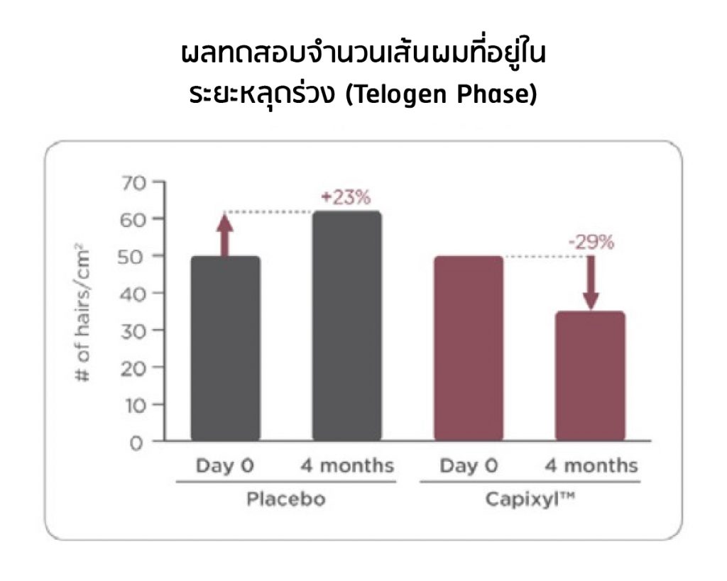 เส้นผมของผู้ได้รับ Capixil ใน ระยะหลุดร่วง (Telogen Phase) ลดลง 29% ใน 4 เดือน