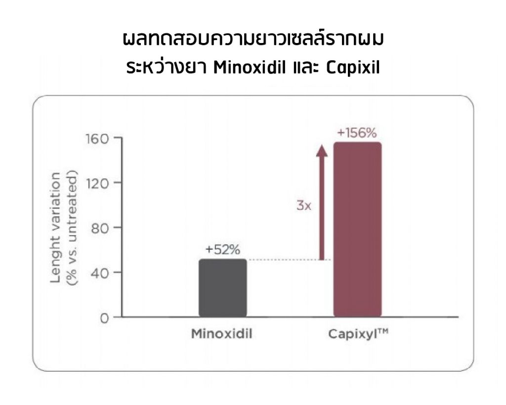จากผลทดสอบในห้องทดลองแบบ Ex vivo Test ระหว่างยารักษาผมร่วง Minoxidil และ Capixil ในรากผมที่เก็บจากระยะเติบโต (Anagen Phase) เป็นเวลา 7 วัน พบว่าความยาวของรากผมที่ได้รับ Minoxidil เพิ่มขึ้น 52% ขณะที่ความยาวของรากผมที่ได้รับ Capixil เพิ่มขึ้นถึง 156% ซึ่งมากกว่า Minoxidil ถึง 3 เท่า