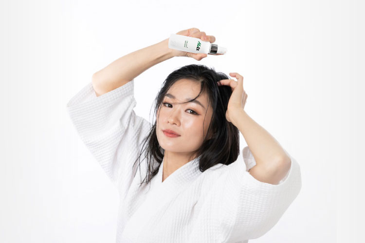 2.ฉีดเซรั่ม AloEx ก่อนการใช้ความร้อนกับเส้นผม ช่วยเพิ่มความชุ่มชื้น ปกป้องผมเสียจากความร้อน